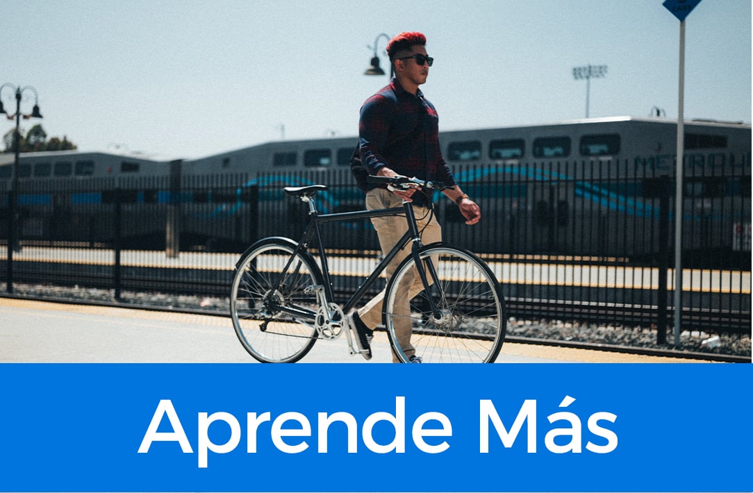 Los trenes de Metrolink son amigables con las bicicletas durante todo el año, con áreas designadas para guardarlas en todos los vagones. Tenga en cuenta que los espacios para bicicletas están disponibles por orden de llegada. Cuando el espacio se llena, es posible que usted deba esperar el siguiente tren, por lo que se recomienda planear con anticipación y llegar temprano.