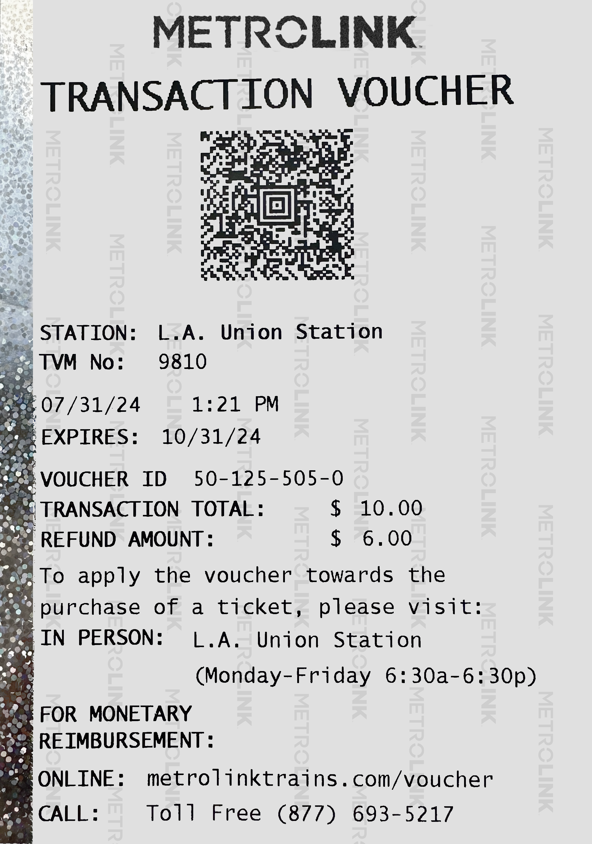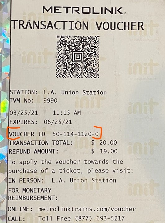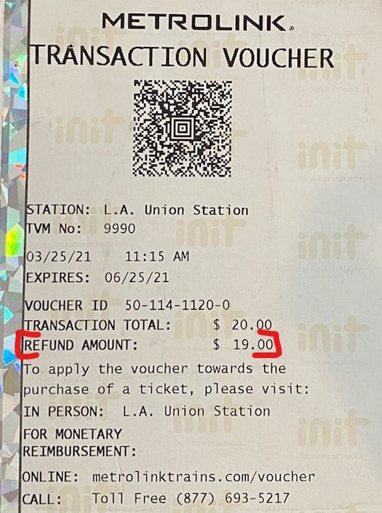 DISCLAIMER: Metrolink does not refund Amtrak vouchers. For Amtrak refund assistance, or to find the closest Amtrak ticket office, call 1-800-USA-RAIL. Amtrak vouchers may also be mailed in for reimbursement.